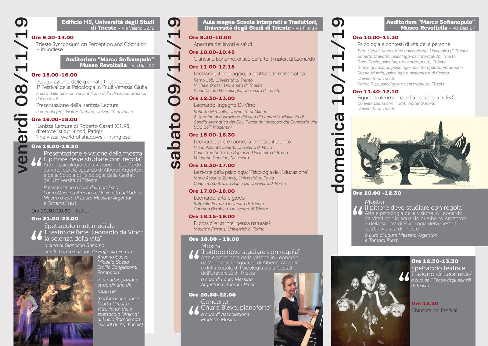 La Kanizsa Lecture è un evento organizzato dall’Unità di Psicologia del Dipartimento di Scienze della Vita e rivolto a un ampio pubblico organizzato per ricordare la figura di Gaetano Kanizsa, fondatore della scuola triestina di psicologia sperimentale. Quest’anno farà riferimento anche alla figura di Leonardo da Vinci
